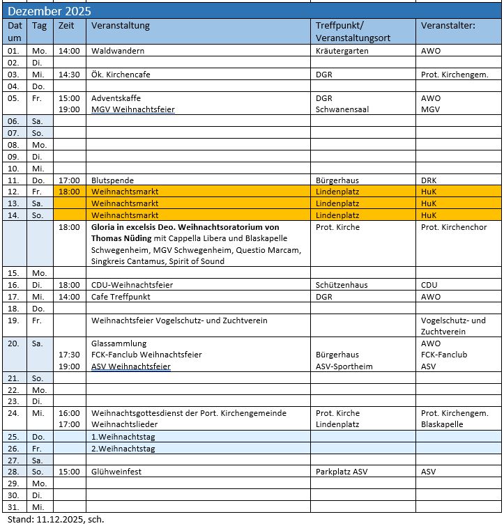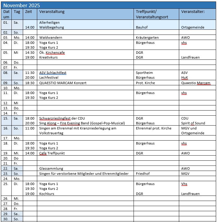 Anmerkung: Unterlegung in orange bedeutet „mehrtägige Veranstaltung“